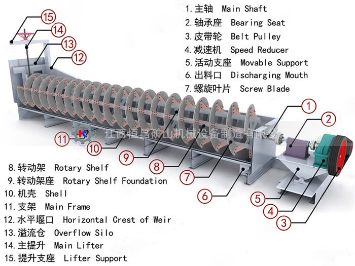2.選礦螺旋分級(jí)機(jī)分級(jí)粒度細(xì),反砂率高,可以滿足球磨選礦的不同需求,無(wú)粉塵污染,高效環(huán)保。
