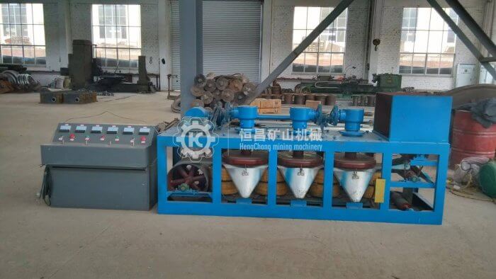 CP3型號(hào)三盤帶式磁選機(jī)設(shè)備可根據(jù)礦物的磁性差異,可通過調(diào)節(jié)各級(jí)磁盤勵(lì)磁電流形成不同強(qiáng)度的磁場來對礦物進(jìn)行高效分離,也可調(diào)節(jié)各級(jí)磁盤與被選礦粒之間的感應(yīng)距離來得到不同的磁場感應(yīng)強(qiáng)度,達(dá)到多種礦物的一次性分離。