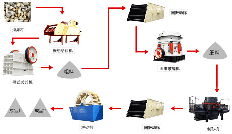 廣東茂名500t/d鵝卵石機制砂流程工藝
